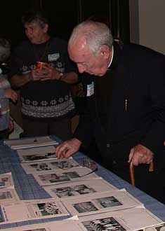 Fr. McFarland and Joe Stutz look over the display of photographs.