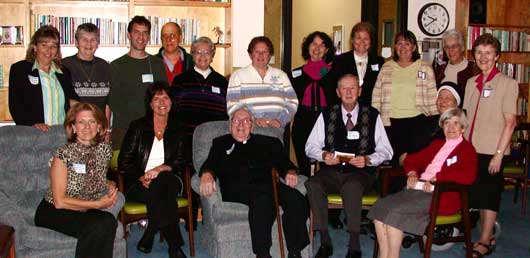 Standing in front of the alter in the chapel are; back row, Sr. Kenneth, Joe Stultz, and Jim Brown; and in the front row, Barbara McFarlane, Joan McFarlane, Cathy McFarlane, Cathy Guarini, and Patricia Lynn Reilly. Too bad Fr. McFarland could not attend the Walking tour as the Chapel would be his place to be the "star performer."