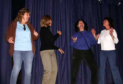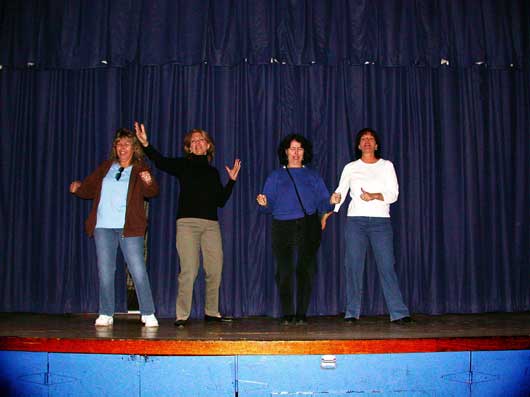 The tour of the village was fun. My favorite part was once again dancing on the stage. Patricia, Cathy G., Joan, and I made believe we were dancing to "A Pretty girl is like a melody." I tried to tape dance to "East Side, West Side" too. I'm sure we looked funny. The school looks exactly the same. The kitchen still has the green tile walls. We checked out the rooms that we used to stack cans of food that were donated. We reministed about peeling potatoes, and destringing string beens. Some of you may remember loading the dishwasher as one of your jobs. It's the same dishwasher! There was a man in there loading it when we went by, so we told him that was our job at one time. We talked about what we liked and disliked about food that was served. Some of us hated the oatmeal and the skin on the hot chocolate. Fun memories...