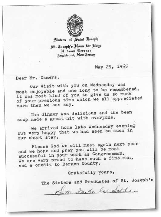 In the years from1953 through 1964 several graduating classes and staff went to our nation's capital to represent the Village. They were guests of Frank C. Osmers, Congressman from New Jersey's 9th District from 1939 to 1942 and again from 1951 to 1964.