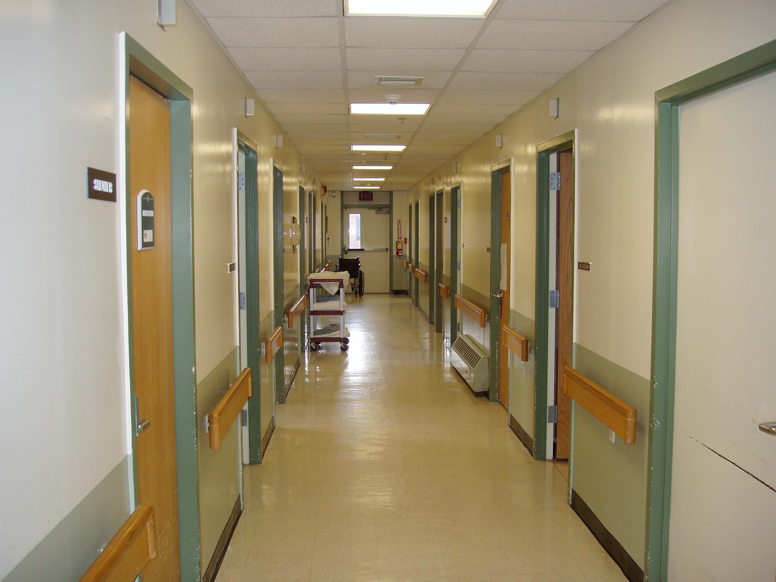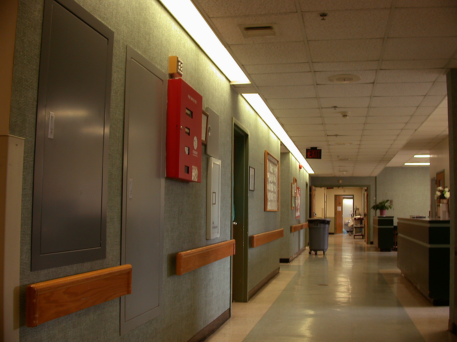 Many patient rooms of the infirmary still serve as such for the nursing home residents. The dental office was behind one of the doors on the right along with examination rooms.