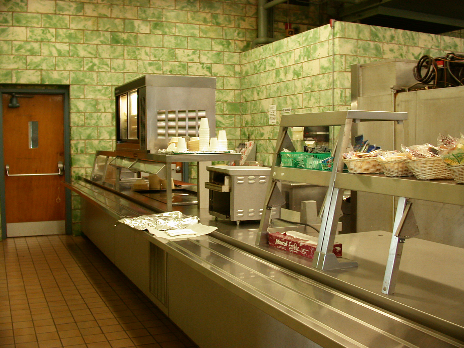 Today the cafeteria kitchen prepares meals for the nursing home. The cafeteria dining room is used by the resident students of the Touchstone program.