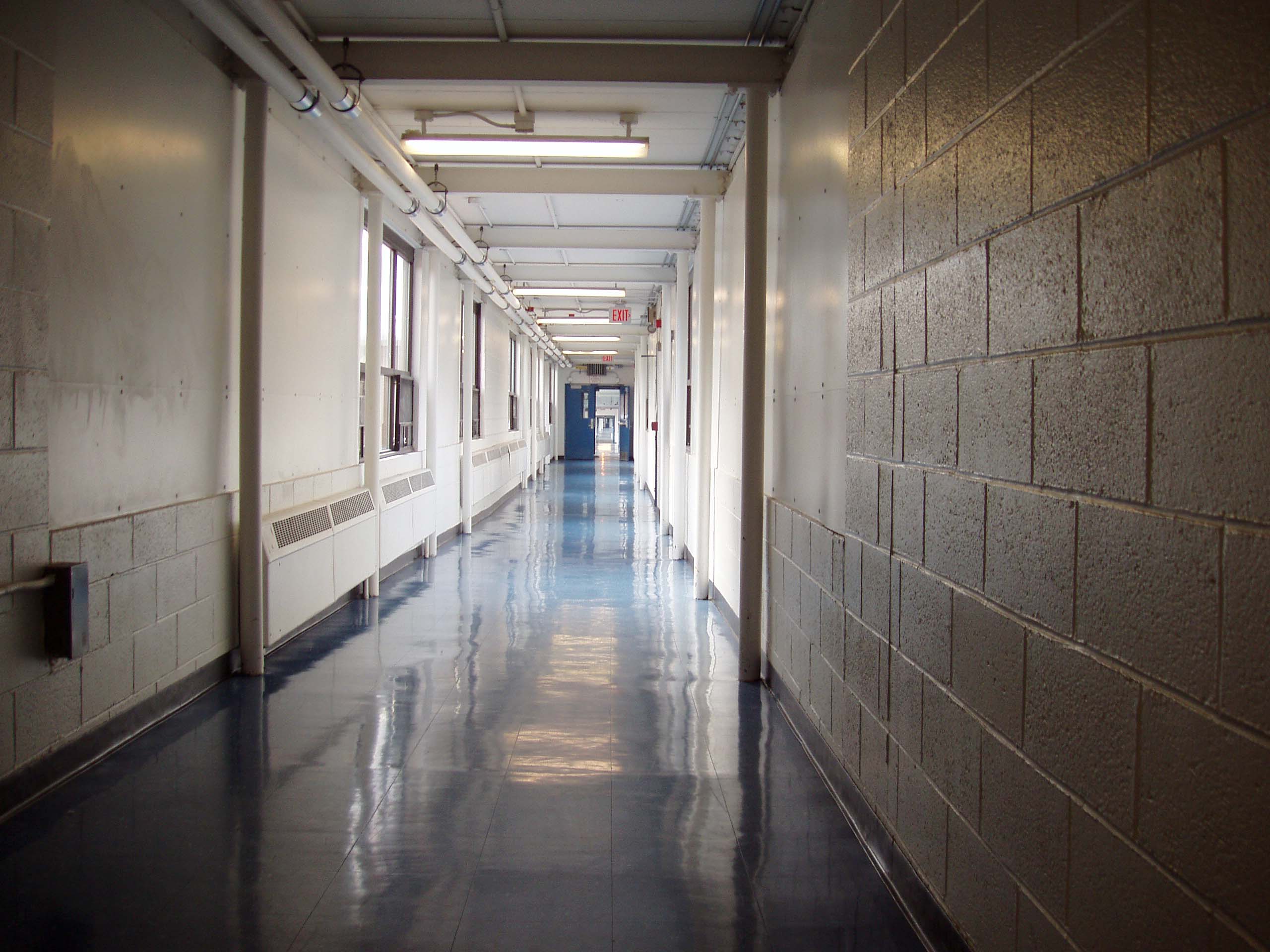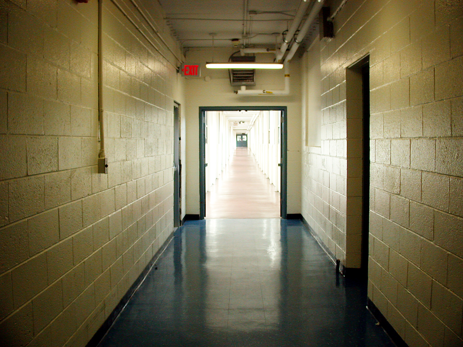 The length of corridor leading to the maintenance building was painted brown, floor tiles removed, and most of the windows replaced with solid insulated walls. It's still cold and now more institutional than ever.