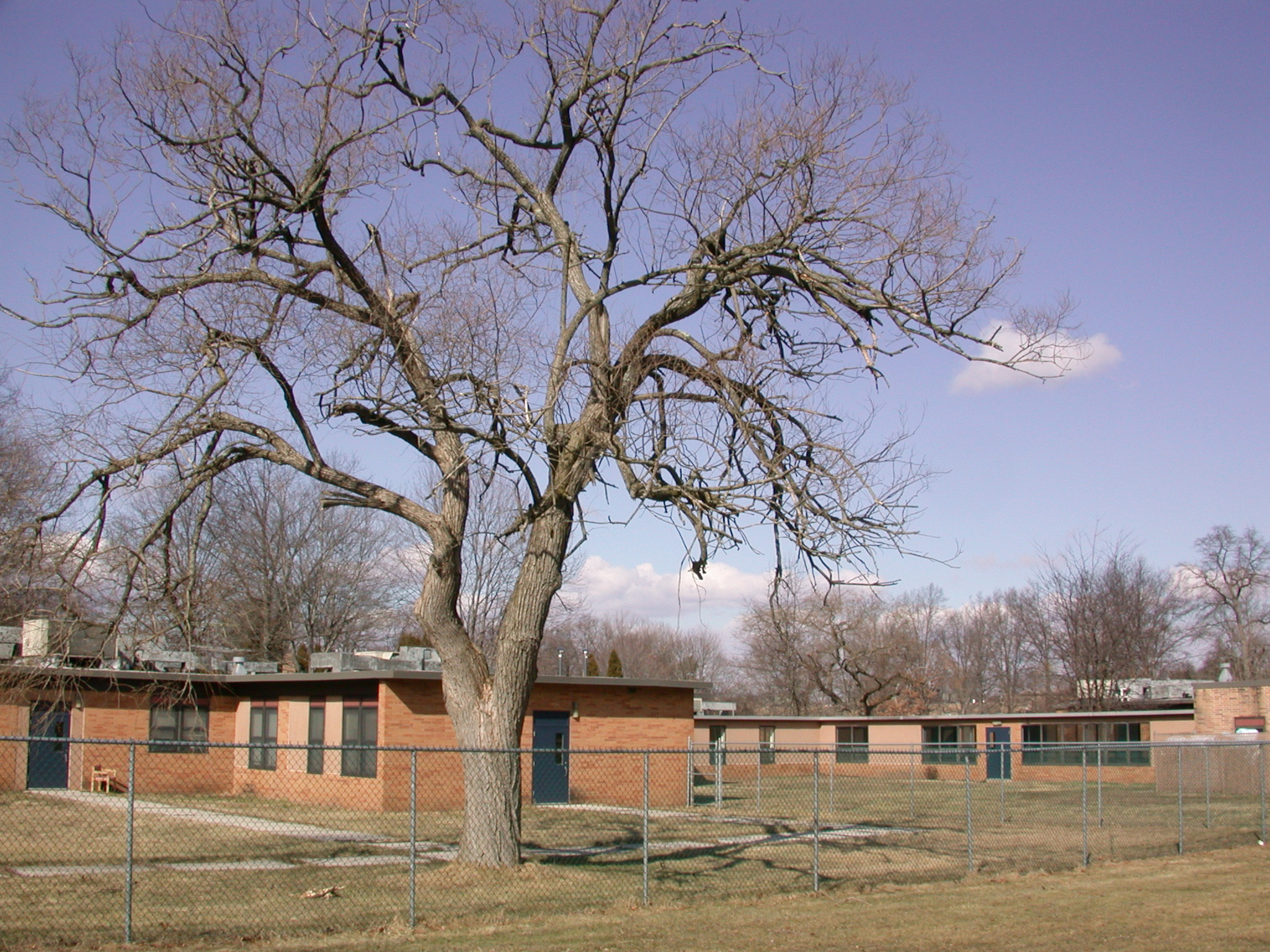 Here is another view from the Senior Boys Cottage looking back towards the gym. We see the industrial park to the right up by the school blacktop. The parking lot in the foreground is new.